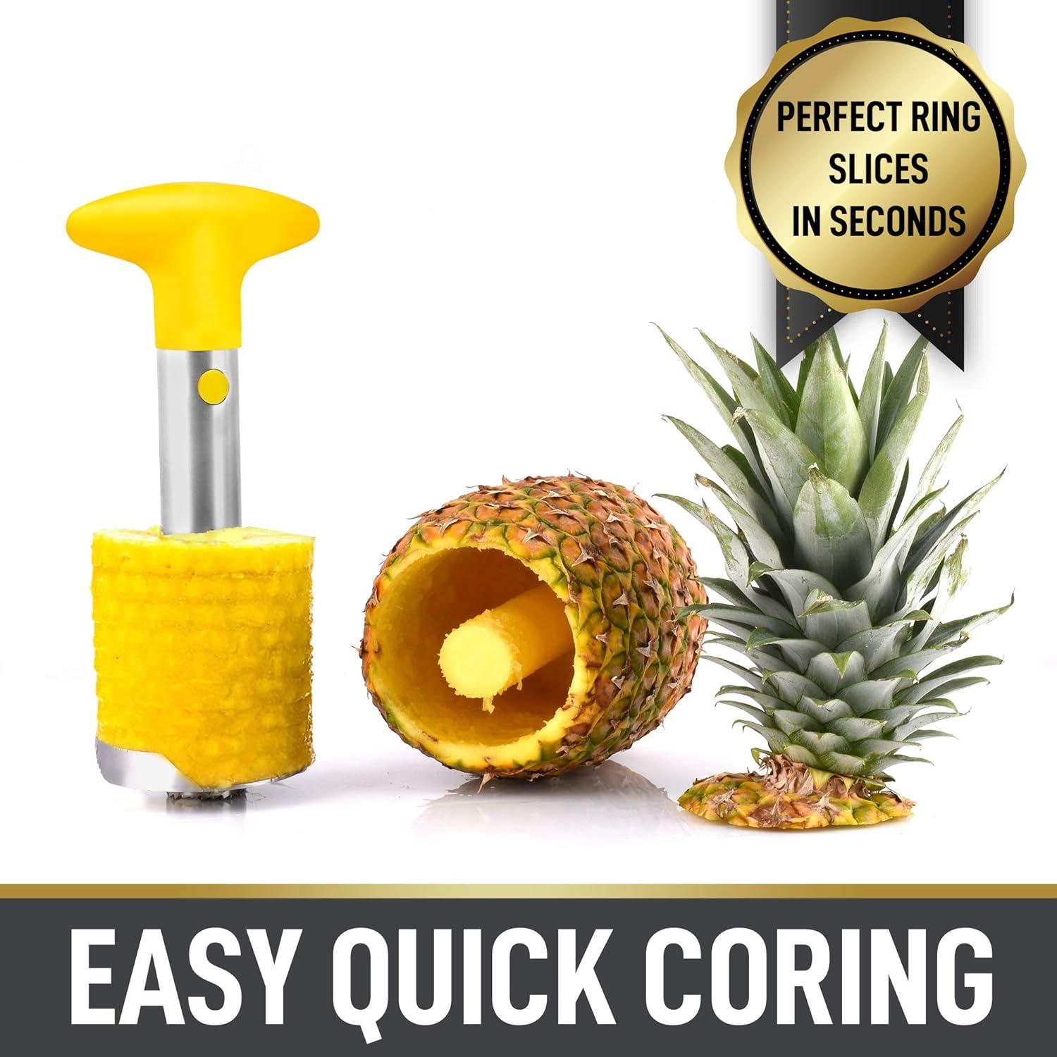 Cores & Slices Pineapple In Seconds: Peel, slice, and de-core a pineapple with the Simple Craft Pineapple Corer! Made with premium quality 430 stainless steel that is rust-resistant and BPA-free.