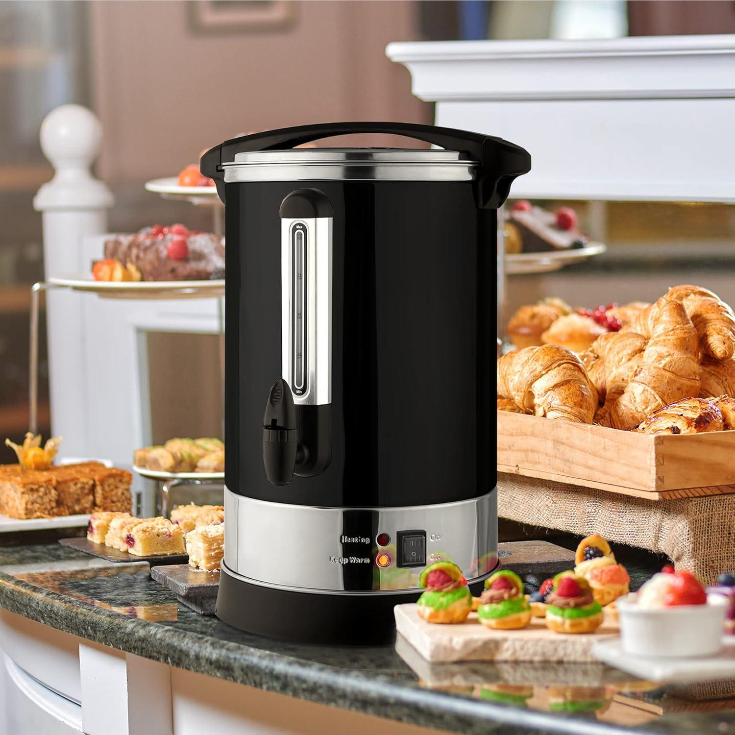 IDEAL FOR LARGE GATHERINGS: This coffee urn is best suited for commercial settings. Our coffee percolator is perfectly elegant for brunch or a dessert table at a party that keeps your coffee or tea hot and fresh all the time. These coffee pots are perfect for offices, meeting rooms, lounges, cafes, hotels, outdoor picnics, Shabbat, wedding celebrations, and other large gatherings. This hot water dispenser is perfect for tea, hot chocolate, or any other hot drink.