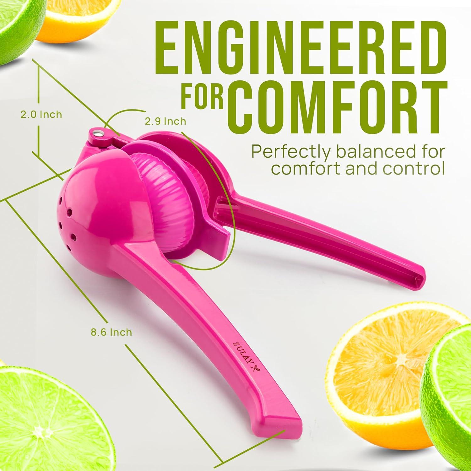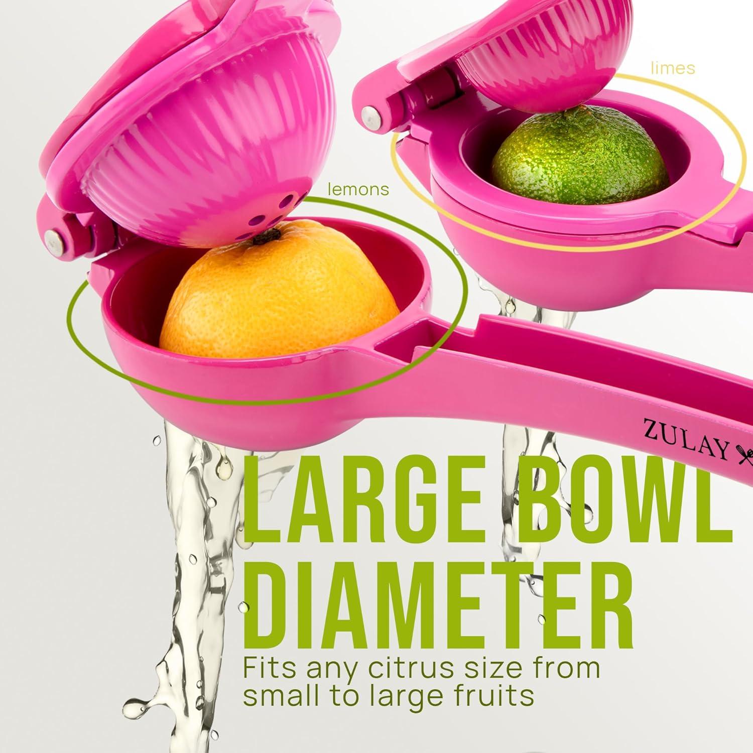 About this item SQUEEZE OUT EVERY DROP OF JUICE:Our lemon squeezer won’t waste even a single drop from your favorite fruit and will also leave the seeds and pulp behind! The 5-inch diameter of the citrus press bowl makes it suitable for various types and sizes of fruit. Watch the juicy goodness of limes, lemons, oranges, grapefruit, apples, pineapples, pomegranates, and other citrus fruits come straight out of the citrus squeezer, ready to add flavor to your meals or drinks. SAVE TIME AND EFFORT:Our citrus juicer makes juicing easy-peasy lemon squeezy. The comfortable grip handle allows you to squeeze all the juice from lemons, limes, or oranges in seconds for making delicious recipes like guacamole, lemonade, cocktails, and more. Unlike bulky electric juicers, you no longer have to worry about electricity or replacing batteries with this manual citrus press. STURDY AND DURABLE MATERIAL:This manual juicer is made of heavy-duty cast iron that can easily withstand the pressure from continuous pressing for years to come. The leverage mechanism allows a one-time easy pull to get all the juice out. Our citrus press is designed with a heavy rubberized base to firmly keep it in place without the fear of falling, tipping, or sliding off the counter. This hand juicer is great for both professional and at-home use. EASY TO CLEAN AND SAFE TO USE:Focus more on extracting fresh fruit juice than worrying about cleaning up. All parts of this juice press are detachable and dishwasher friendly, which makes cleaning super quick. The stainless steel bowl and filter cone are made using material, making the fruit squeezer safe and healthy to use. HASSLE-FREE, ZULAY GUARANTEE:We love and take our pomegranate juicer and back it up with a lifetime guarantee. Have the confidence that this product will last. If there are ever any issues, just contact us and we will make it right.