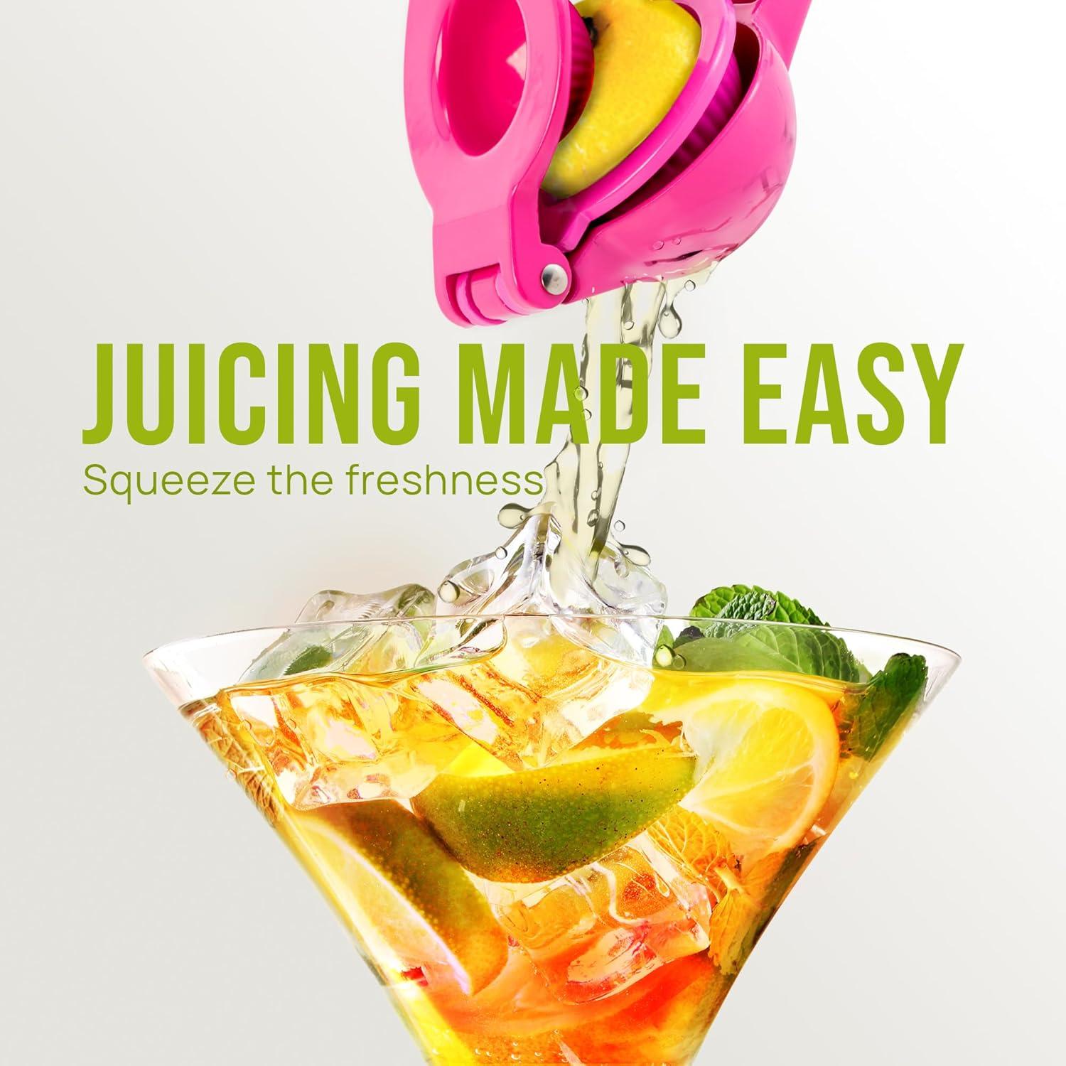 SAVE TIME AND EFFORT: Our citrus juicer makes juicing easy-peasy lemon squeezy. The comfortable grip handle allows you to squeeze all the juice from lemons limes or oranges in seconds for making delicious recipes like guacamole lemonade cocktails and more. Unlike bulky electric juicers you no longer have to worry about electricity or replacing batteries with this manual citrus press