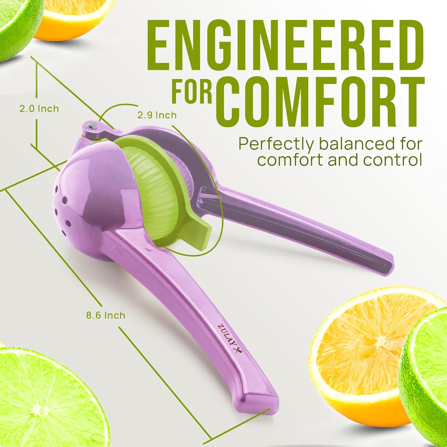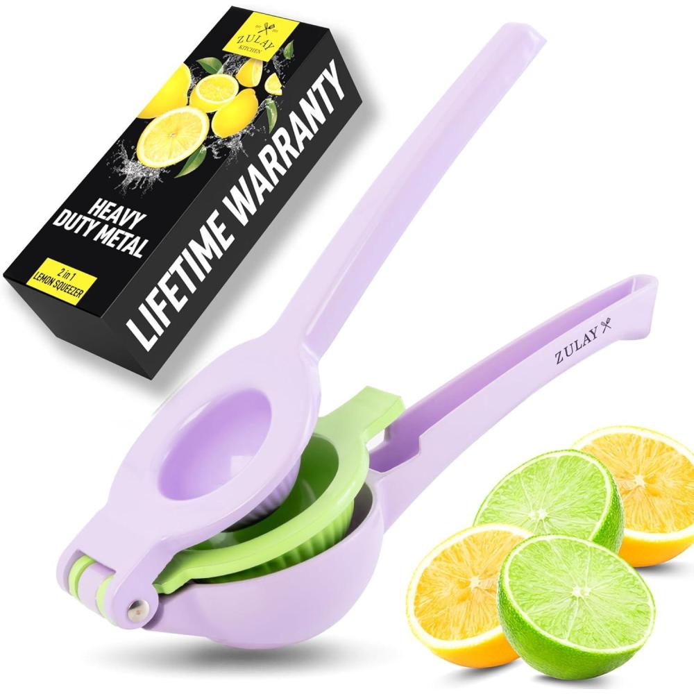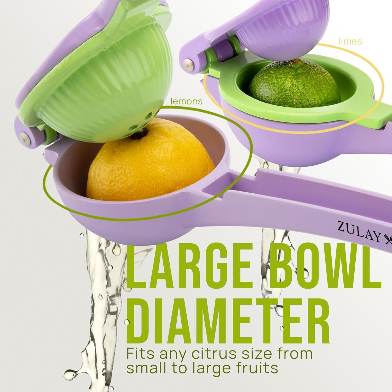 About this item SQUEEZE OUT EVERY DROP OF JUICE:Our lemon squeezer won’t waste even a single drop from your favorite fruit and will also leave the seeds and pulp behind! The 5-inch diameter of the citrus press bowl makes it suitable for various types and sizes of fruit. Watch the juicy goodness of limes, lemons, oranges, grapefruit, apples, pineapples, pomegranates, and other citrus fruits come straight out of the citrus squeezer, ready to add flavor to your meals or drinks. SAVE TIME AND EFFORT:Our citrus juicer makes juicing easy-peasy lemon squeezy. The comfortable grip handle allows you to squeeze all the juice from lemons, limes, or oranges in seconds for making delicious recipes like guacamole, lemonade, cocktails, and more. Unlike bulky electric juicers, you no longer have to worry about electricity or replacing batteries with this manual citrus press. STURDY AND DURABLE MATERIAL:This manual juicer is made of heavy-duty cast iron that can easily withstand the pressure from continuous pressing for years to come. The leverage mechanism allows a one-time easy pull to get all the juice out. Our citrus press is designed with a heavy rubberized base to firmly keep it in place without the fear of falling, tipping, or sliding off the counter. This hand juicer is great for both professional and at-home use. EASY TO CLEAN AND SAFE TO USE:Focus more on extracting fresh fruit juice than worrying about cleaning up. All parts of this juice press are detachable and dishwasher friendly, which makes cleaning super quick. The stainless steel bowl and filter cone are made using material, making the fruit squeezer safe and healthy to use. HASSLE-FREE, ZULAY GUARANTEE:We love and take our pomegranate juicer and back it up with a lifetime guarantee. Have the confidence that this product will last. If there are ever any issues, just contact us and we will make it right.