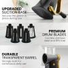 FUNCTIONAL DESIGN: The powerful suction base securely attaches to a clean and dry surface, preventing the food shredder from falling over. The transparent barrel is slightly inclined to prevent clogging and allow the food to come out smoothly.